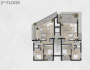 Building A: 4 floors. Two apartments per floor + penthouse. All apartments have 2 bedrooms + living room. Total of 7 apartments.