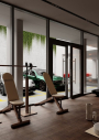 The complex has a private gym and lounge area.