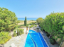 The property offers breathtaking sea and mountain views.