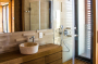 The terraces and decks to the rear of the villa combine several levels of solid teak wood, slate stone and water which together provide a tranquil space for relaxation.